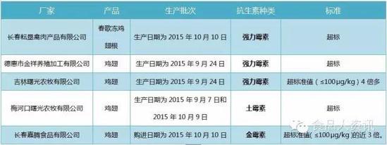 哪6個批次雞肉產(chǎn)品抗生素殘留超標?