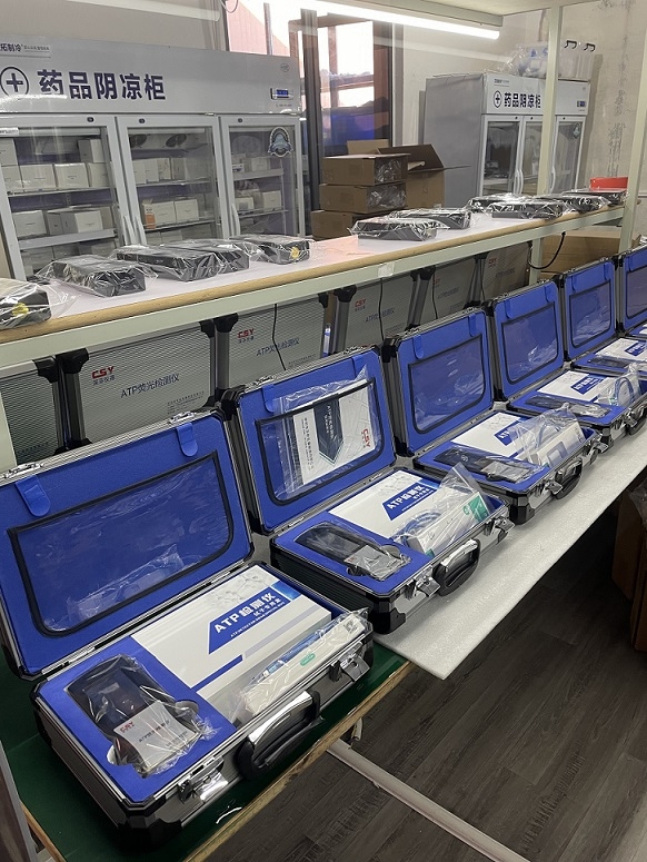 釋放出的ATP與拭子中含有的熒光素酶和熒光素發(fā)生反應,形成熒光反應。熒光素酶是一種催化劑,它能夠將ATP轉化為熒光素,通過與熒光素的反應產(chǎn)生光信號。這一反應基于螢火蟲發(fā)光的原理,其中熒光素酶催化熒光素與ATP結合,生成光信號。這一過程的核心是熒光素酶的催化作用,它使得ATP的存在能夠通過發(fā)光現(xiàn)象被檢測到。